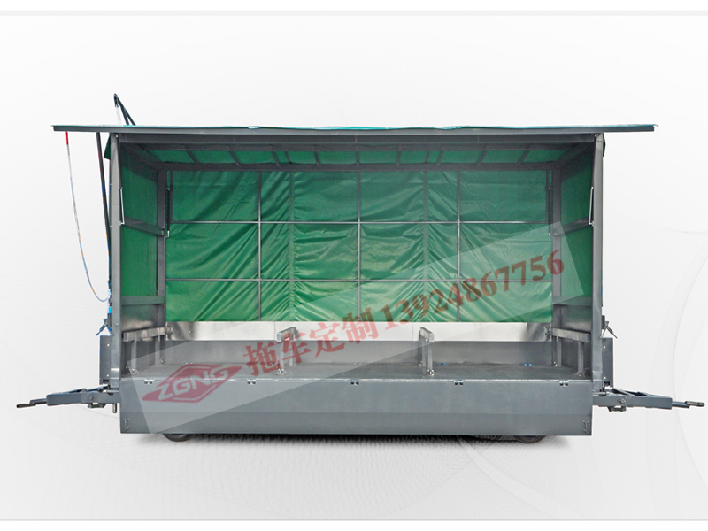 雨篷型平板拖車主要針對戶外作業(yè)而制,保護貨物防水、防塵、防曬,尤其適用于對包裝外部要求嚴格的產(chǎn)品運輸。整體雨篷框架可拆卸,滿足不同運貨需要。